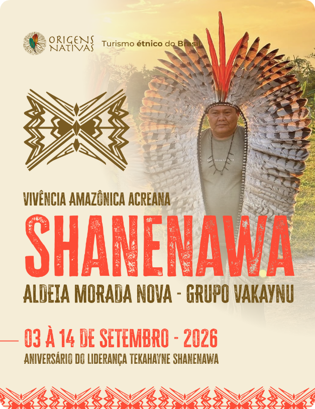 As atividades étnicas realizadas pelo Origens Nativas, por meio do seu Programa de Turismo Nativo, dentro das comunidades indígenas do Brasil, são experiências construídas em parceria com as lideranças e guardiões tradicionais, respeitando a cultura, os protocolos espirituais e a autonomia de cada povo. O propósito é proporcionar uma vivência profunda e consciente, na qual o visitante não apenas observa, mas aprende e se conecta com a sabedoria ancestral preservada há gerações.