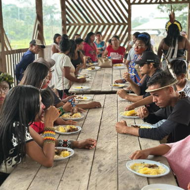 A refeição nas aldeias não é apenas um momento de alimentação, mas um ato coletivo de união e respeito. Comer juntos fortalece vínculos, honra quem preparou o alimento e reconhece a generosidade da natureza. Cada prato servido representa gratidão ao território e à ancestralidade, reforçando valores como reciprocidade, equilíbrio e consciência.